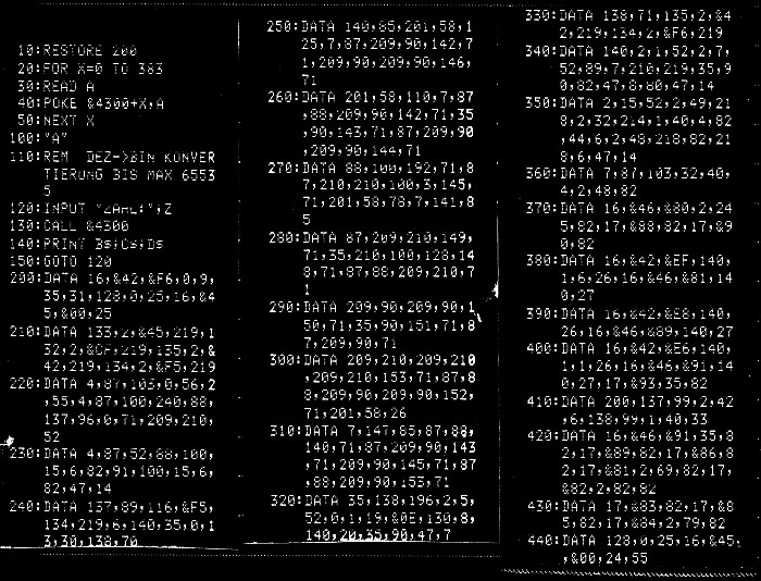110:REM DEZ->BIN KONVERTIERUNG BIS MAX 65535
